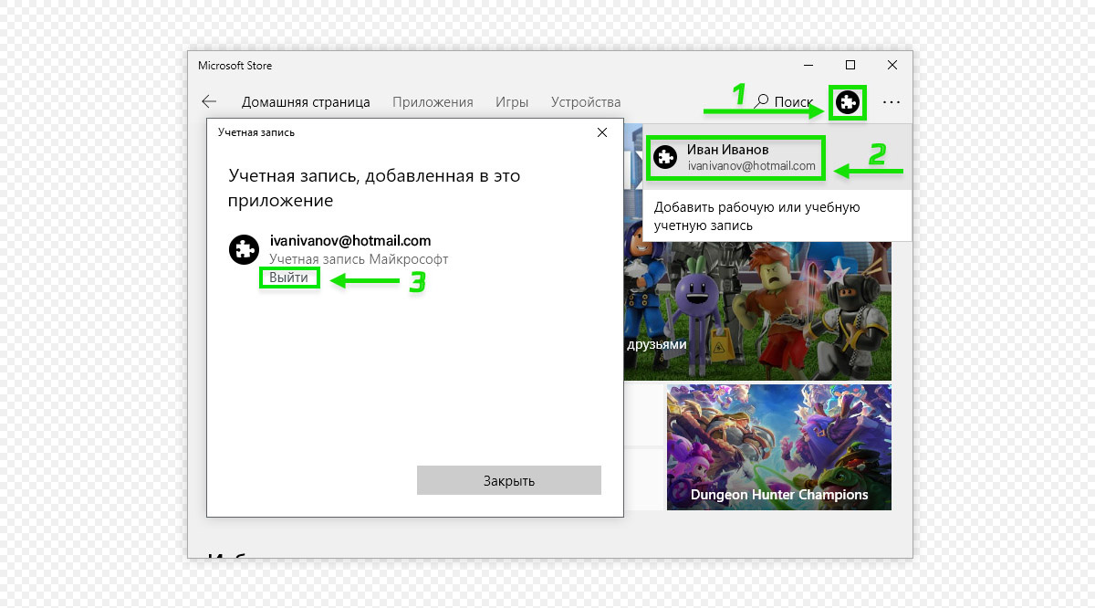 3. Как мне войти в другую учетную запись Microsoft Store?